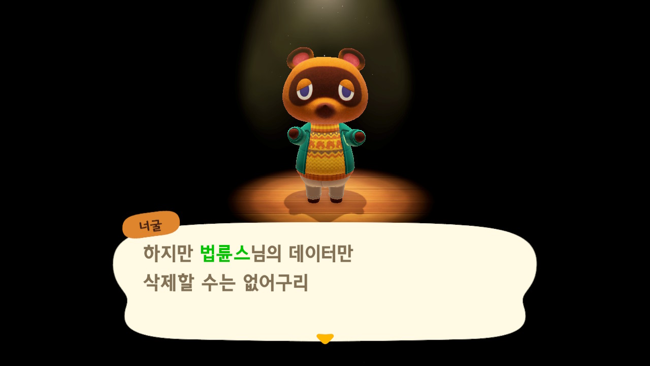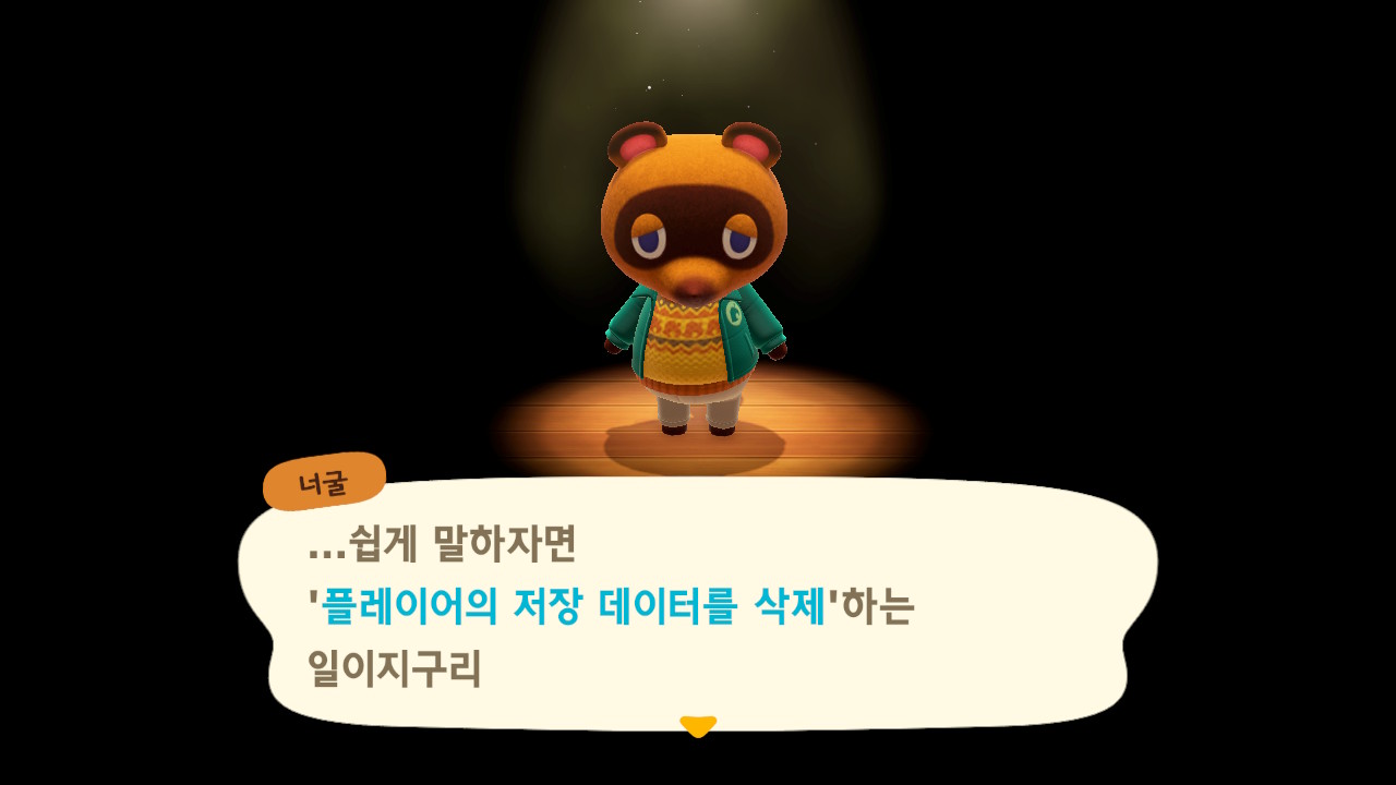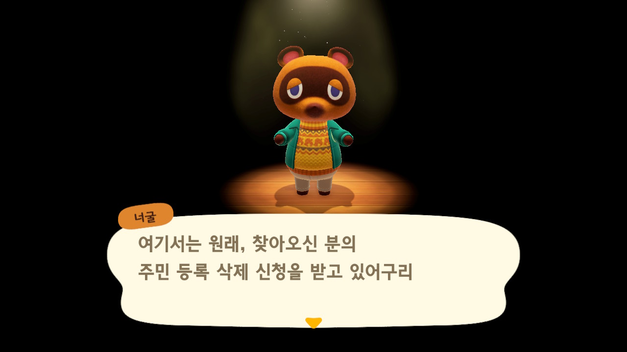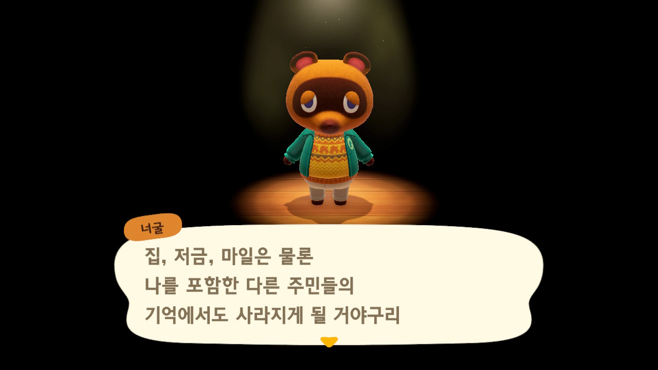 그러면 집, 저금, 마일과 다른 주민들을 포함한 너굴사장에게서도 아에 없던 사람이 되는 겁니다.