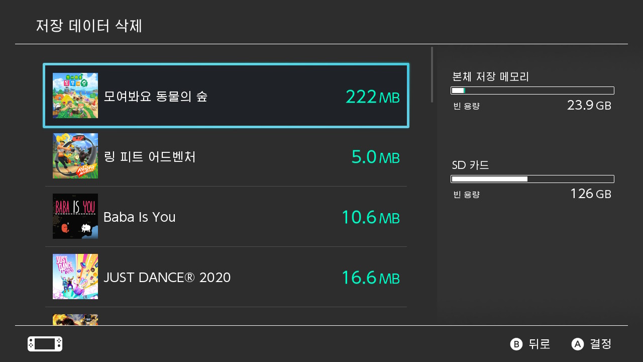 동물의숲 저장데이터가 꽤 크네요 222MB라니!!