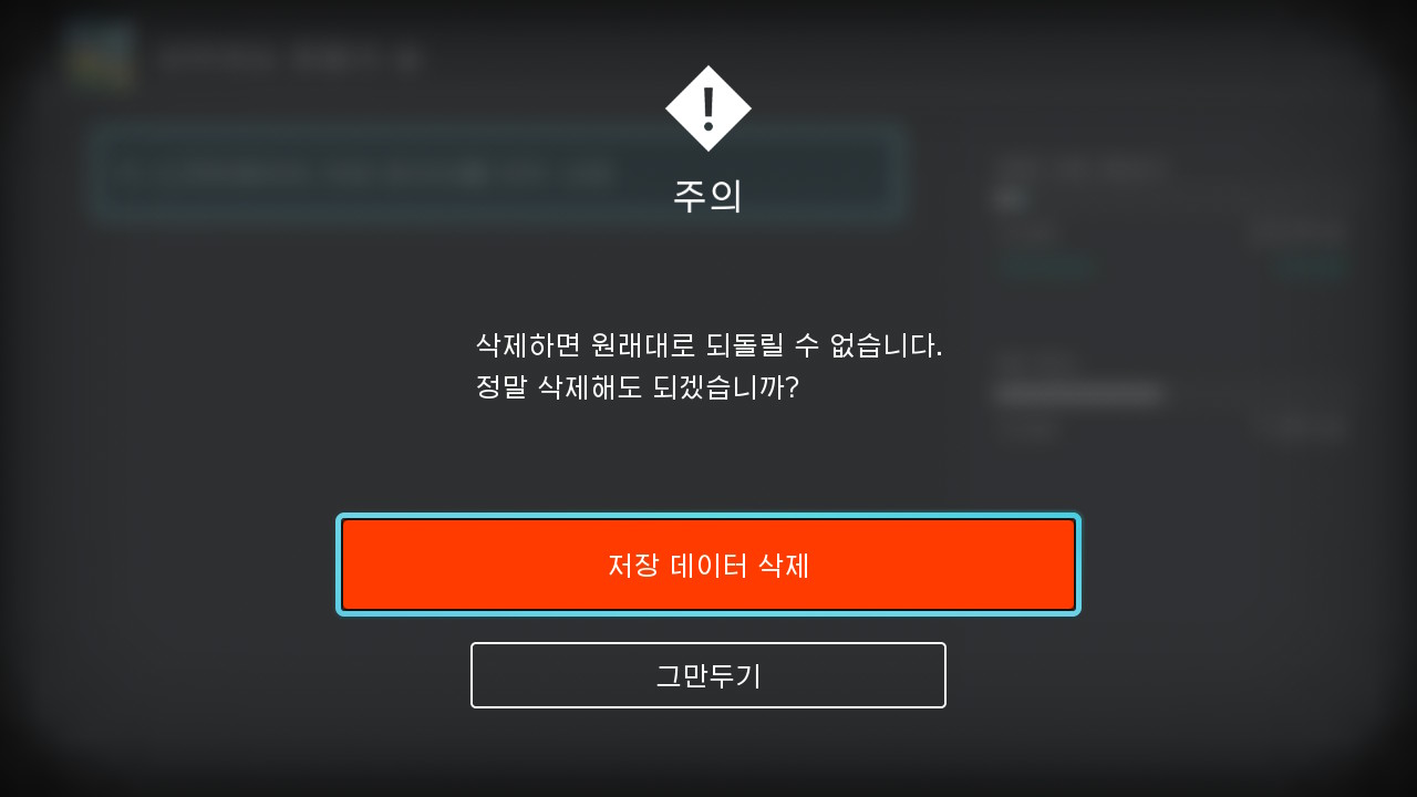 데이터관리를 선택하고, 저장 데이터 삭제를 실행하게 되면 됩니다.