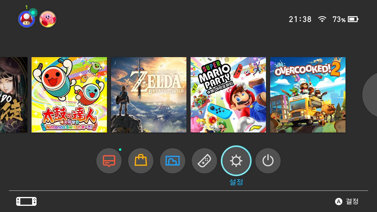 방법은 일단 닌텐도스위치 홈 메뉴에 있는 설정에서