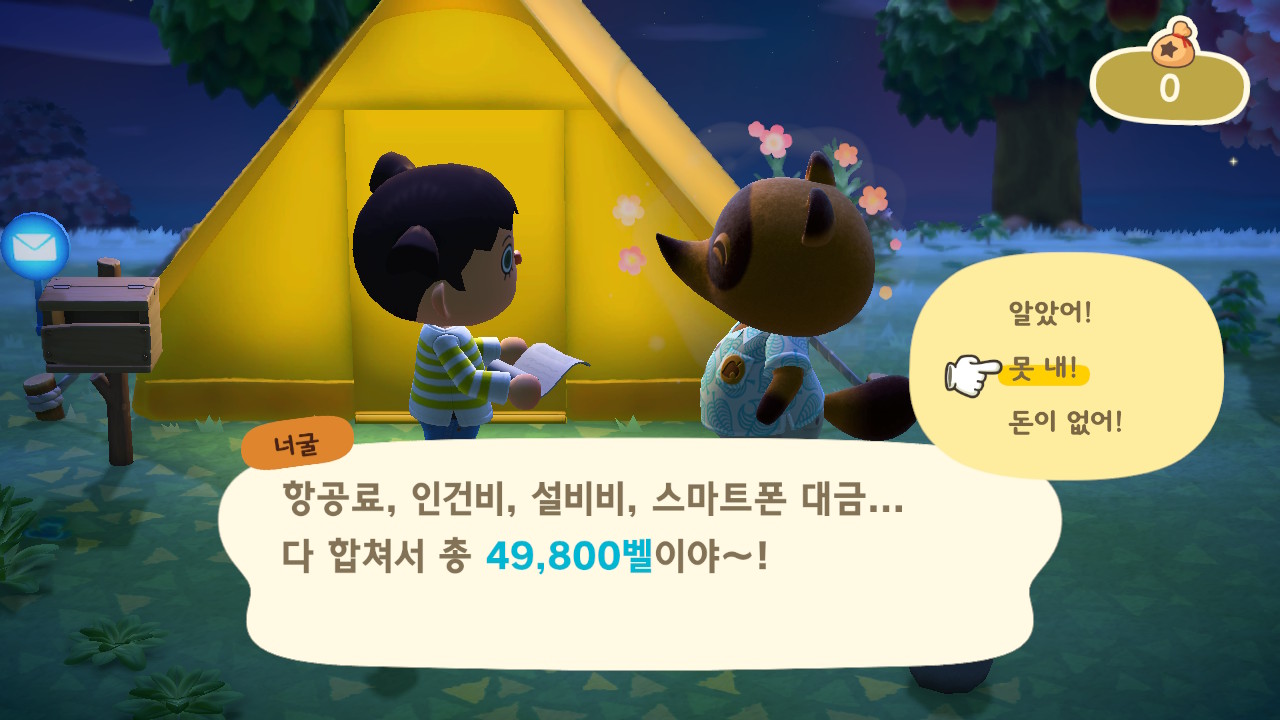 갑자기 5만벨을 요구하는데요, 이건 너굴 마일리지 시스템으로 5000마일을 지불하게 됩니다.