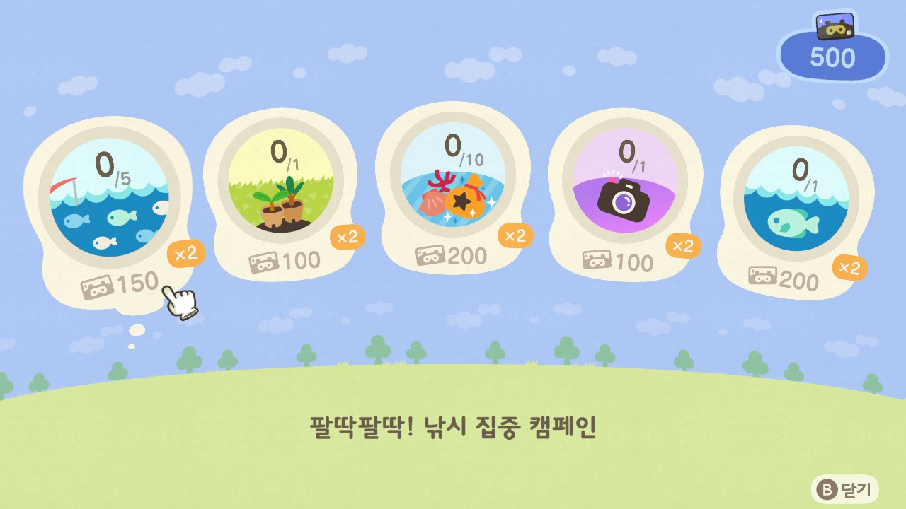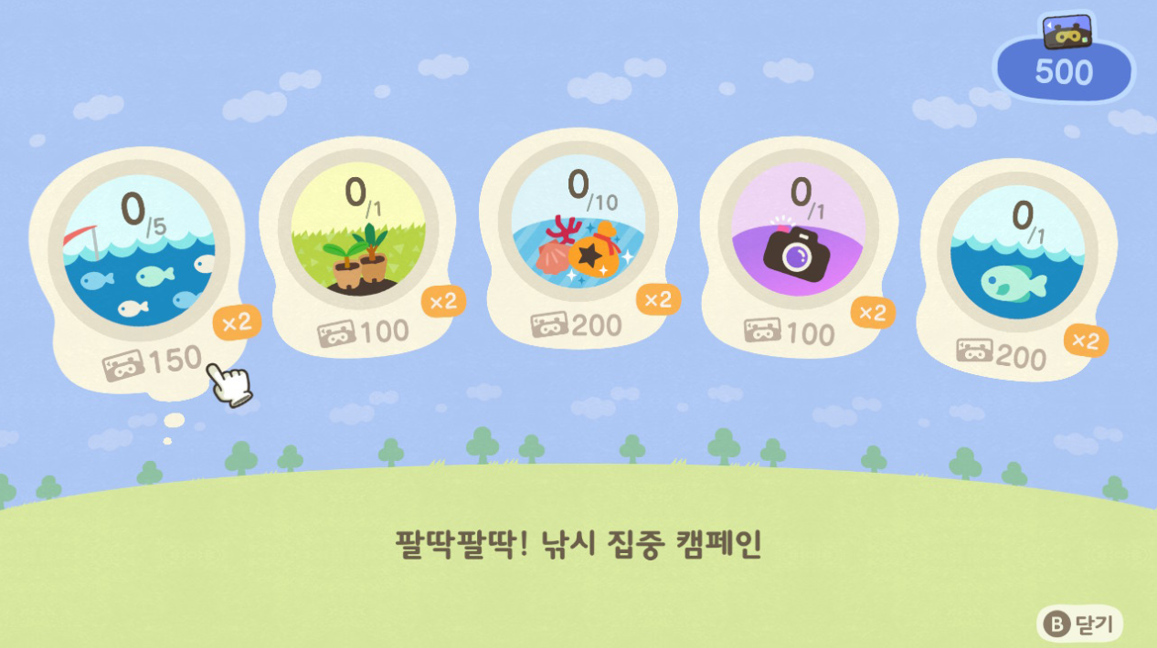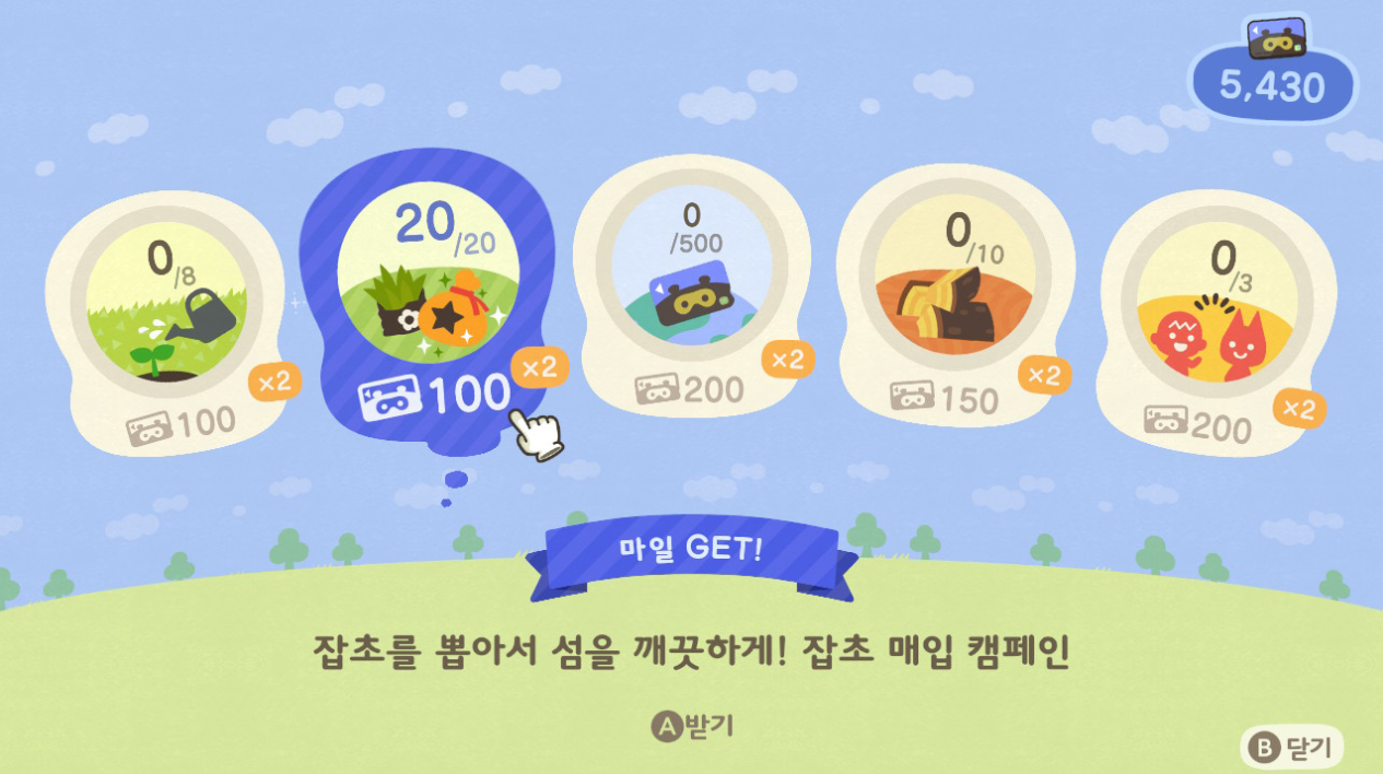 그러다보면 나중에 5,000벨 구매하는 미션이 나왔을 때 살게 없는데도 그냥 사게됩니다.. 과일이나 묘목같은거...