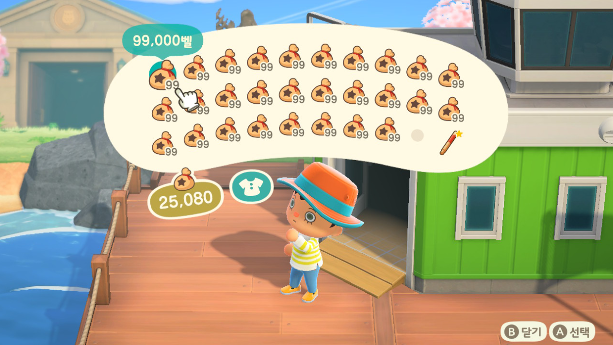 동물의숲에서는 돈을 지갑에 넣어 다닙니다.